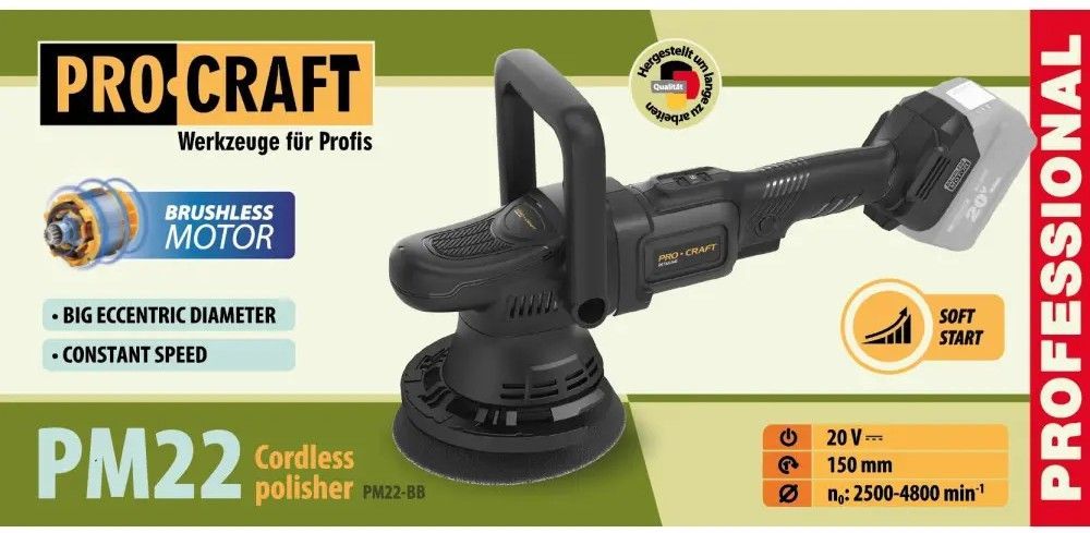 - Аккумуляторная полировальная машина Procraft PM22 (без акб и зп)