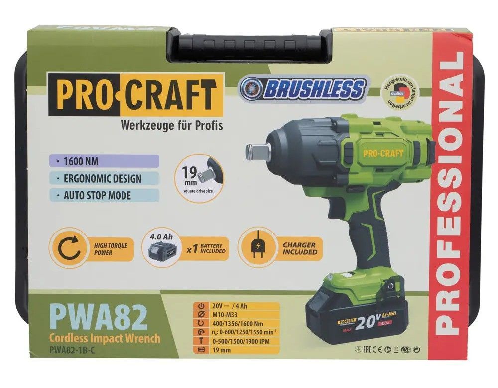 - Аккумуляторный гайковерт Procraft PWA82 Кейс (с 1 АКБ и ЗУ)