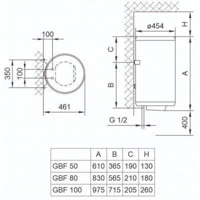 Водонагреватель на 50 литров с цилиндрическим баком имеет вертикальную установку. Бак оснащен двумя сухими тенами, мощность каждого по 1000 Вт, а общая мощность 2000 Вт. Это позволяет нагревать воду до температуры 65°С всего за 115 минут. Бак обладает механическим управлением, что позволяет быстро и удобно настраивать нужную Вам температуру.