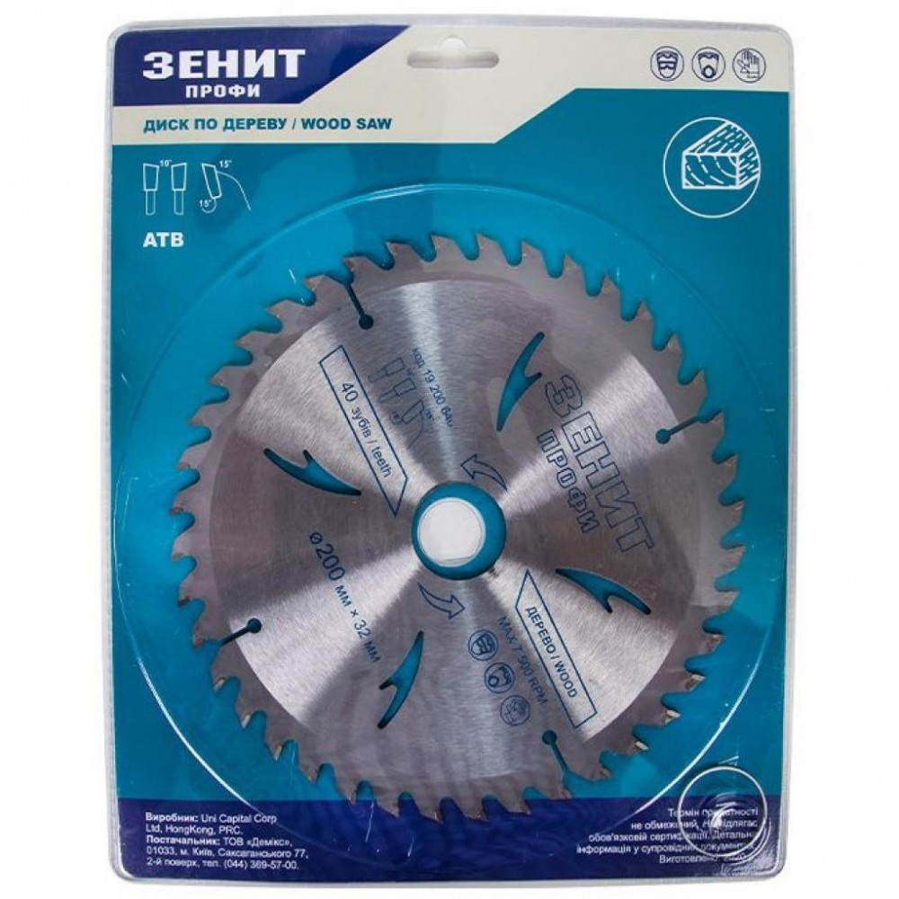 Диск пристальный по дереву 200x32/30, ATB 40 зубов Зенит Профи