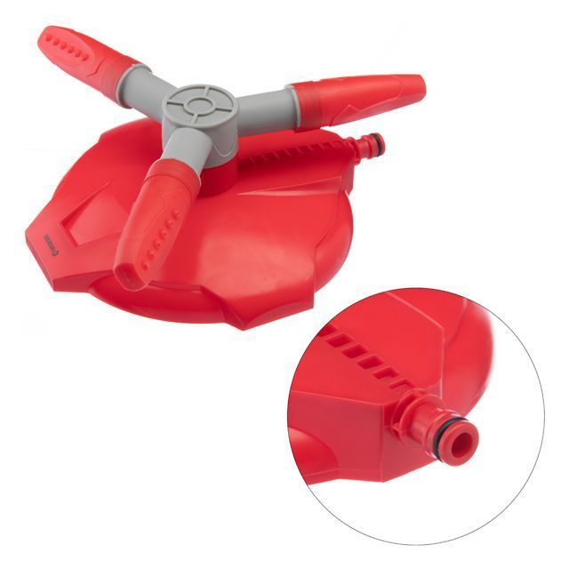 Ороситель круговой (тройная вертушка) незаменим, когда необходимо полить участок, огород, газон, клумбу и прочее. В отличие от ручного полива из шланга, почва увлажняется равномерно, не образовываются лужи, к тому же вы не прикладываете больших усилий на полив.