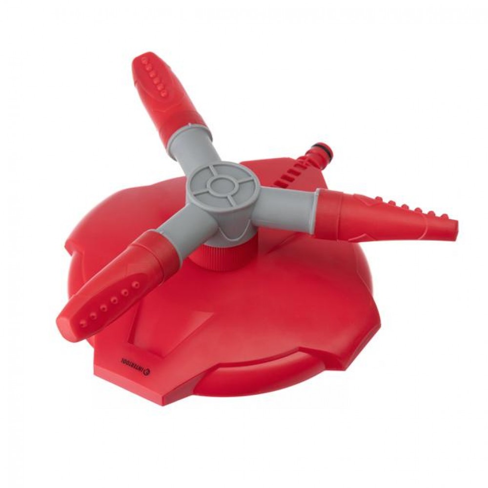 Круговой дождеватель INTERTOOL GE-0075 орошает большую площадь при небольшом расходе воды. Зона полива в диаметре до 8,8 м с максимальным давлением в системе до 6 атм.