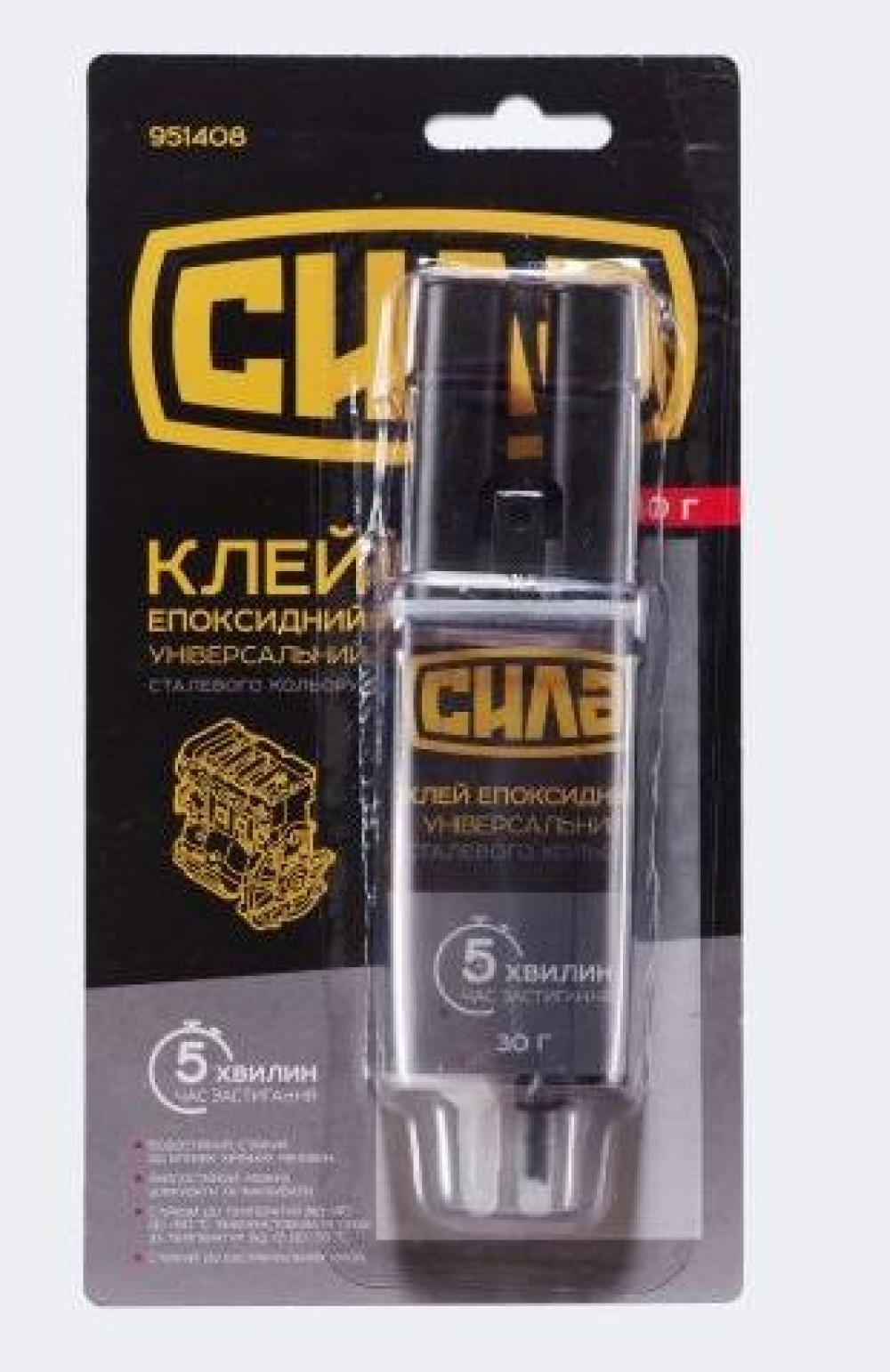 Характеристики Клей эпоксидный двухкомпонентный Сила шприц (951408)