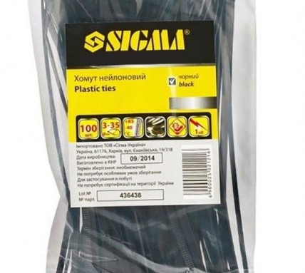 - Хомут нейлон 4.8 -300мм 50шт (чёрный) SIGMA (2502251)
