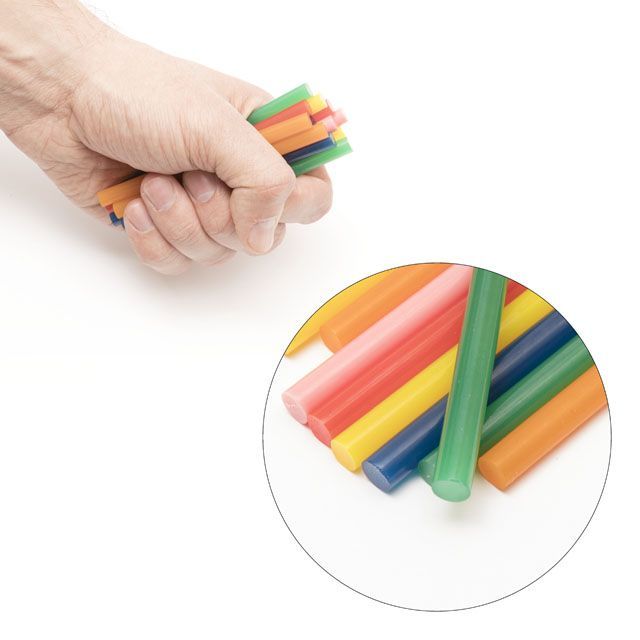Стержни изготовлены из высококачественного сырья марки Dupont. Такой термоклей состоит из сополимера ЭВА, который нетоксичен, не выделяет запаха и не содержит растворителей. Высоковязкий клей позволяет надежно скреплять различные материалы, затвердевая по мере остывания через 30-40 секунд.