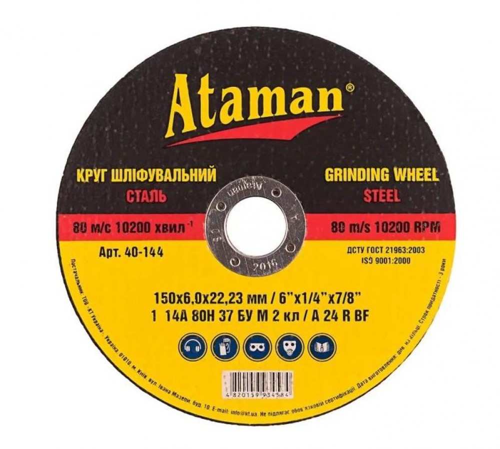 - Круг отрезной по металлу Ataman 150х6.0х22.23