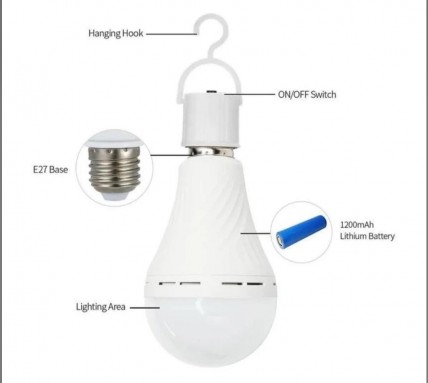 Лампа аккумуляторная 1200 mAh 9 Вт E27 В 4100 К