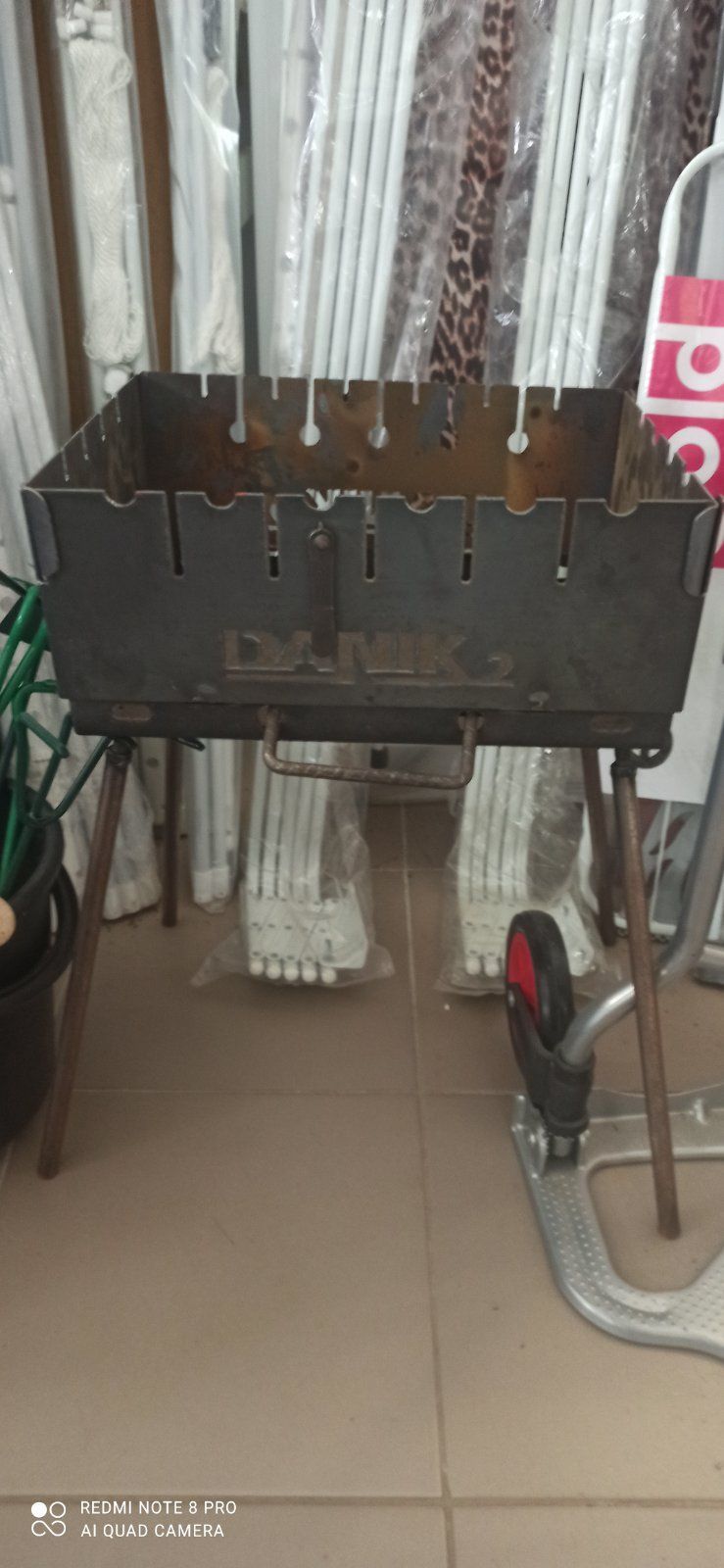 - Конструкция: сборно-разборная. Мангал складывается в компактный «чемодан» с ручкой для удобной транспортировки.