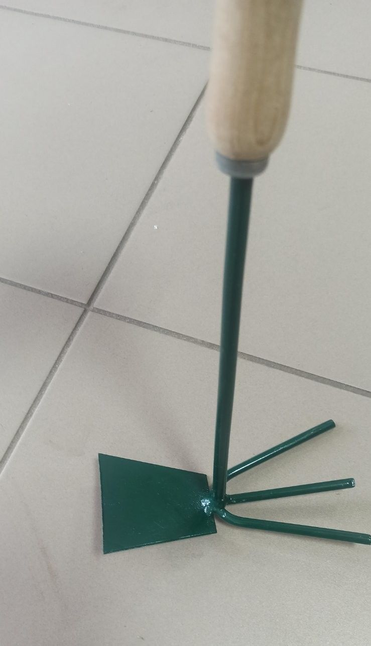 Одна сторона инструмента – это мотыжка которую используют для обработки междурядий, удаления сорняков, создания поливочных борозд, а другая – разрыхлитель с тремя зубцами, который используют для разрыхления, окучивания, прополки и выравнивания грунта. Мотыжку можно использовать для работы в узких междурядьях без повреждения растений. Также этот инвентарь используют для формирования углублений и канавок в почве под посадку семян и для окучивания растений.