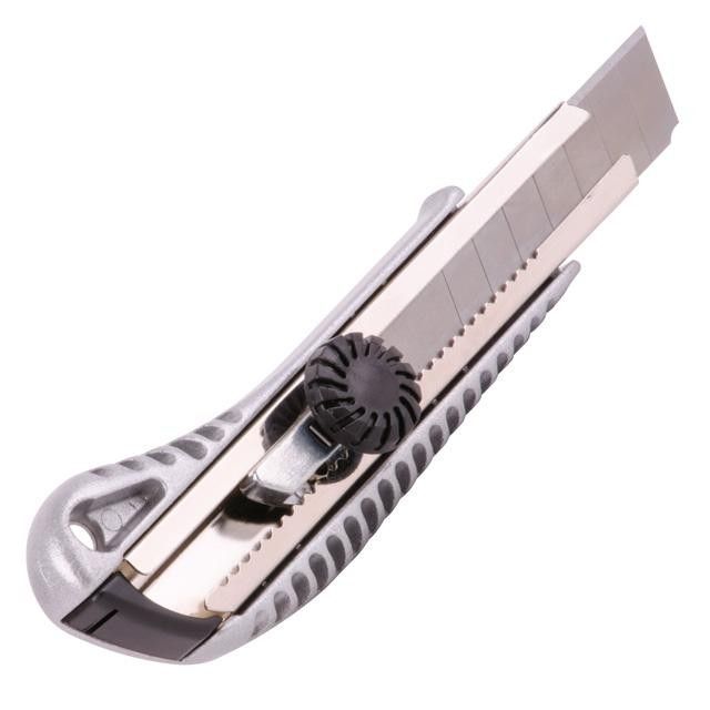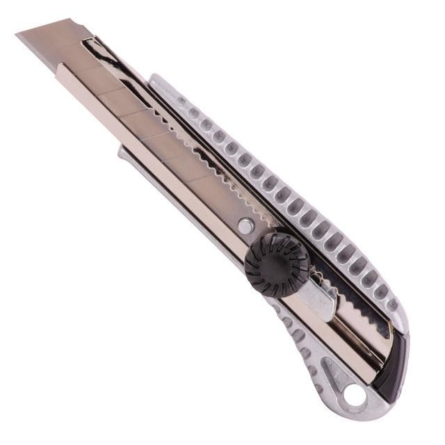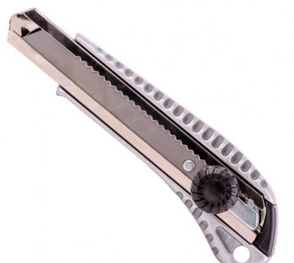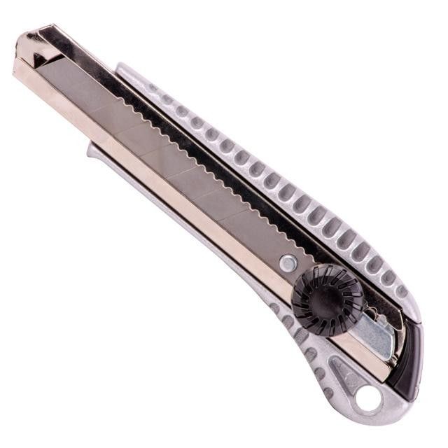 Нож с 18 мм сегментным лезвием, применяется на стройках, складах, а также в домашней и офисной работе. Без особых усилий справляется с монтажной пеной, обоями, скотчем, плёнкой, бумагой и др.