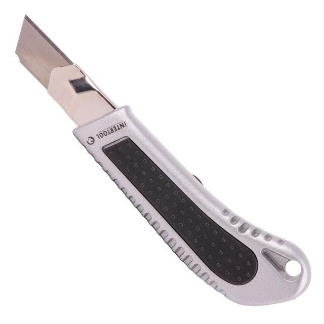 - Нож сегментный 18 мм, металл направляющая, алюминаты корпус, винт фиксация INTERTOOL HT-0507