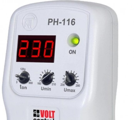 Реле напряжения РН-116 “Volt Control” предназначено для защиты бытовой техники (оборудования) мощностью до 3,5 кВт (холодильников, кондиционеров, стиральных машин, теле-аудио техники и т.п.). ) от недопустимых колебаний напряжения в сети и последствий обрыва нейтрали.