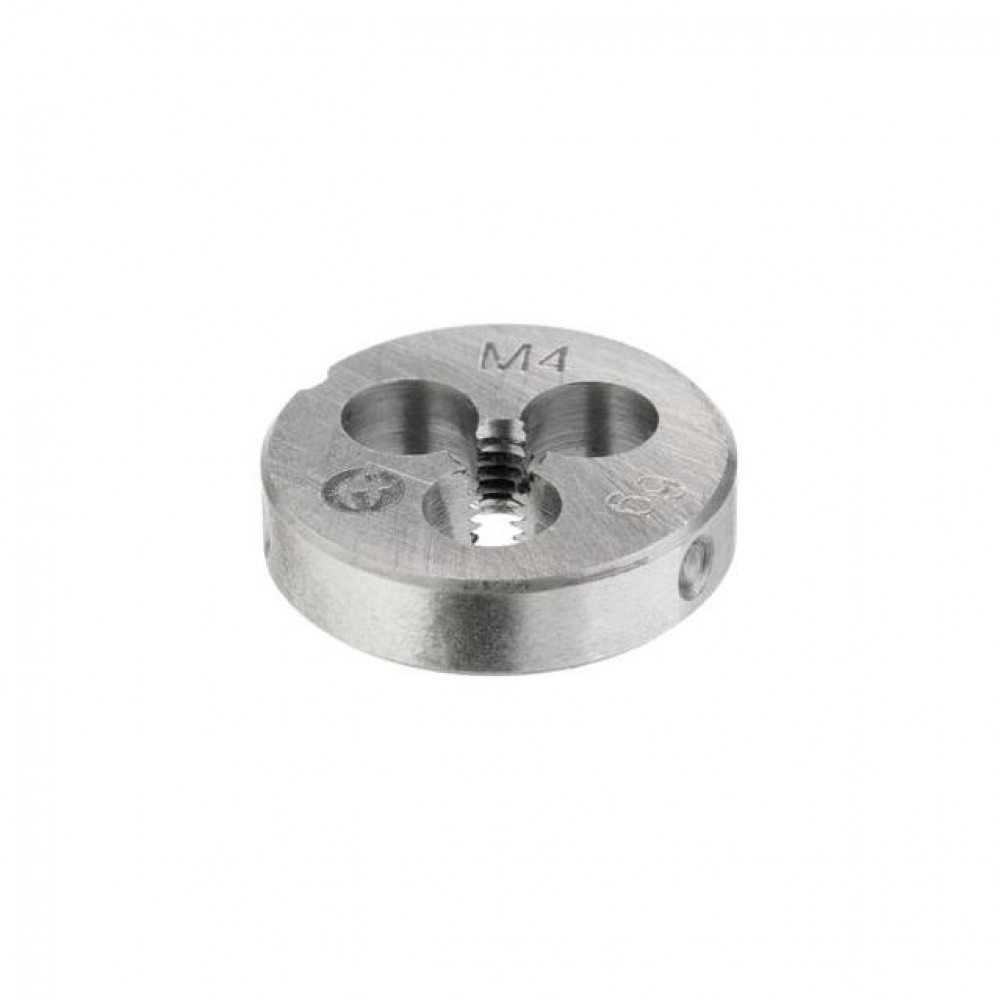 Плашка используется для создания или восстановления наружной резьбы, размером M4 с шагом резьбы 0,7 мм. Широко используется для различных металлов: чугун, медь, латунь, сталь и другие металлические материалы. Плашка работает в паре с держателем плашек для ручной обработки.