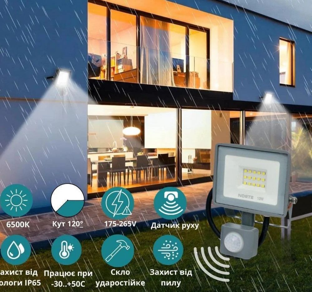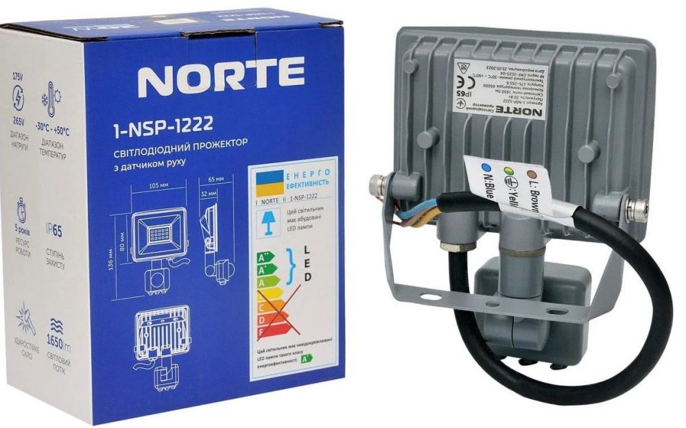 Описание Прожектор NORTE Spotlight 1-NSP-1222 с датчиком движения 20W 6500 K
