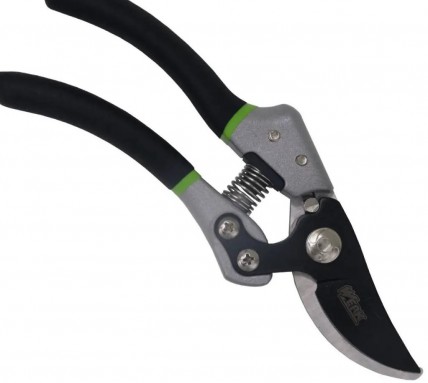 Выполнен из высококачественных и безопасных материалов – из закаленной высокоуглеродистой стали марки SK5, что обеспечивает длительную остроту режущей кромки. Тефлоновое покрытие (PTFE NON-STICK) защищает лезвие от повреждений, уменьшает силу трения при работе, предотвращает налипанье на лезвие мякоти деревьев. Эргономичные алюминиевые ручки с двойным покрытием ПВХ, что надежно фиксирует в руке и очень удобно в работе. Дает возможность обрезать ветви с наименьшим вредом для кустов и деревьев.