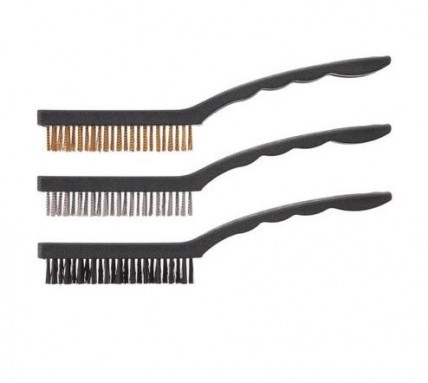 - Латунная — универсальная, не повреждает цветные металлы и идеально справляется с легкими загрязнениями.