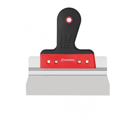 Шпатель изготовлен из высококачественных материалов и подойдет как для профессиональных, интенсивных работ на стройках, так и для домашнего ремонта. Полотно шпателя из нержавеющей стали, имеет алюминиевую вставку с ребром жесткости, что усиливает конструкцию и позволяет выполнять работы на больших поверхностях.