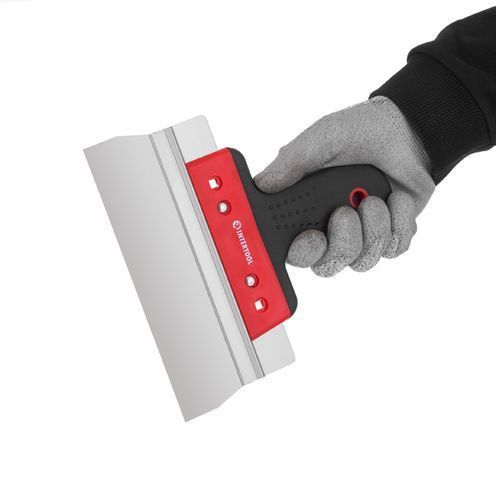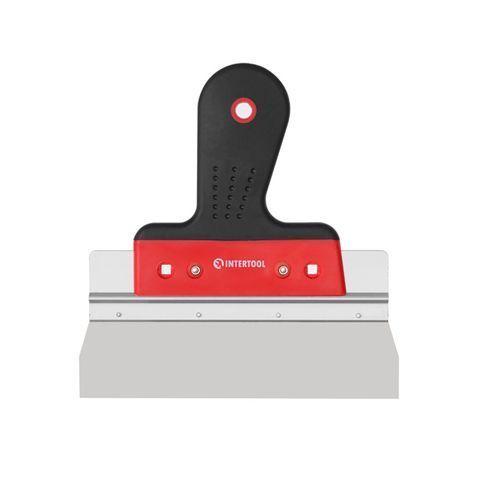Рукоять из пластика и направляющая из алюминия делают шпатель достаточно легким и удобным в использовании. Ручка имеет специальную эргономичную форму, что обеспечивает максимально комфортную работу. Покрытие из TPR резины против скольжения в руках.