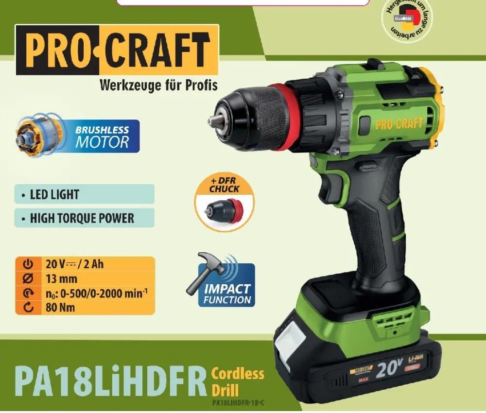 - Шуруповерт Procraft PA18LiH DFR с ударом (1 акб и зу)
