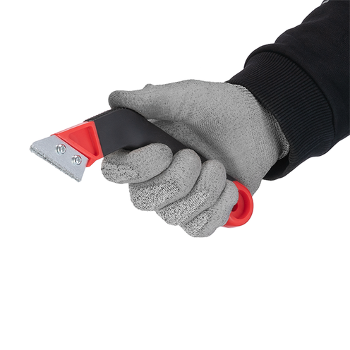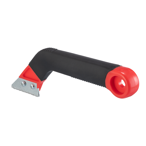 Высокий уровень удобства при работе данным скребком достигается с помощью двухкомпонентной рукоятки из пластика с прорезиненным покрытием. Ее эргономичная форма гарантирует надежный хват инструмента без проскальзываний, а небольшой вес помогает работать дольше без усталости в руках. Также на рукоятке имеется отверстие для удобного хранения скребка на стене.