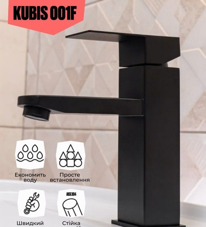 - Смеситель для раковины Lidz Kubis 001F (k35) LDKUB001FBLA43376 Black