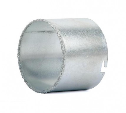 Режущая кромка покрыта карбид-вольфрамовой крошкой, что обеспечивает комфортное сверление без сколов и трещин. Глубина сверления составляет 64 мм.
