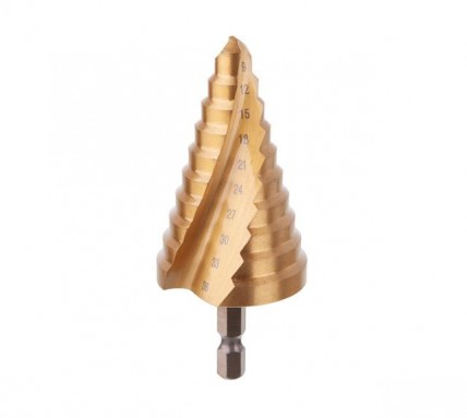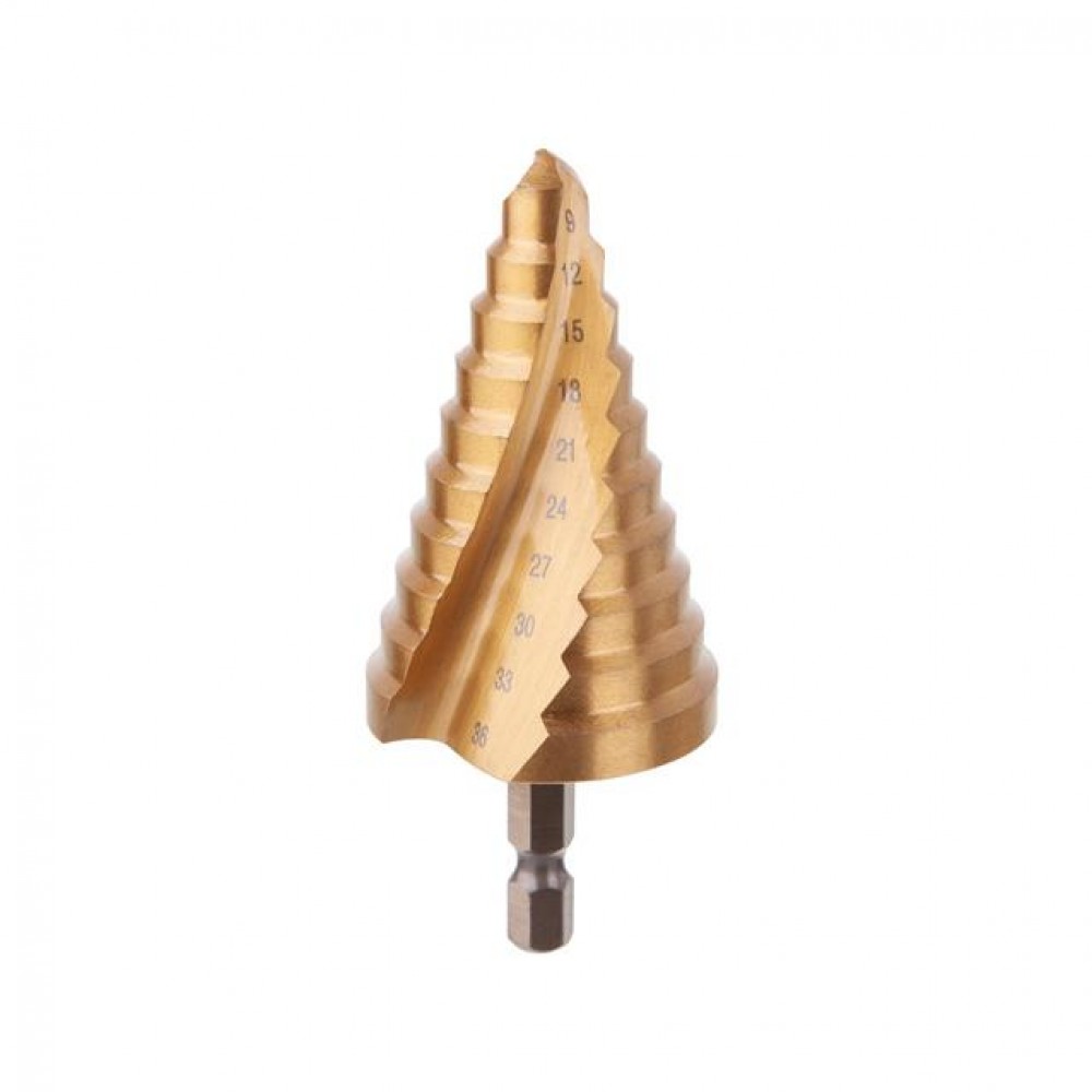 - Сверло ступенчатое по металлу, спиральное, 9-36 мм, HEX SD-5838