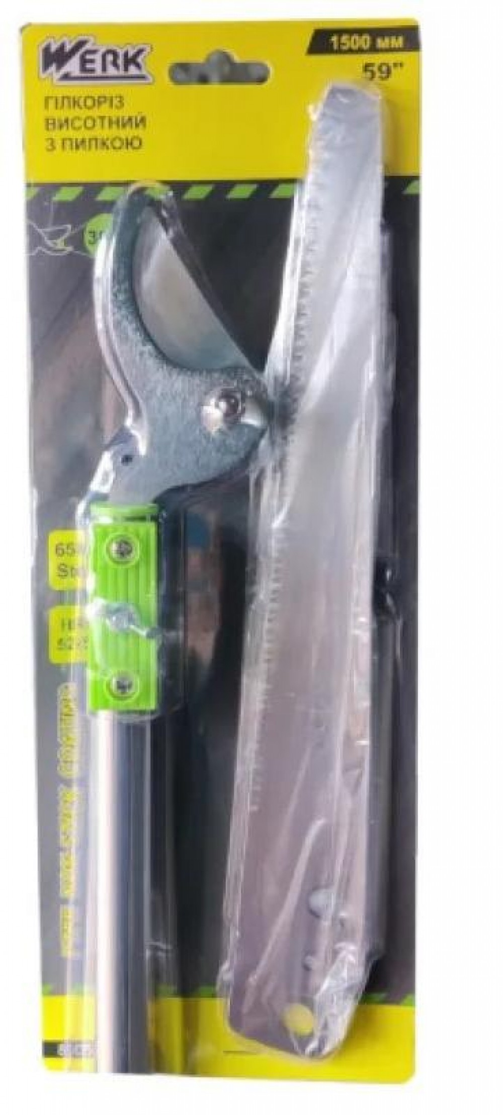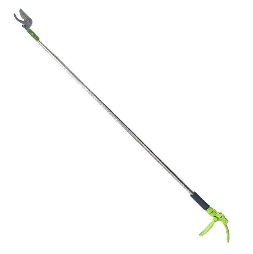 Включает в себя сучкорез и дополнительно оборудован съемной ножовкой для обрезки более крупных и сухих веток