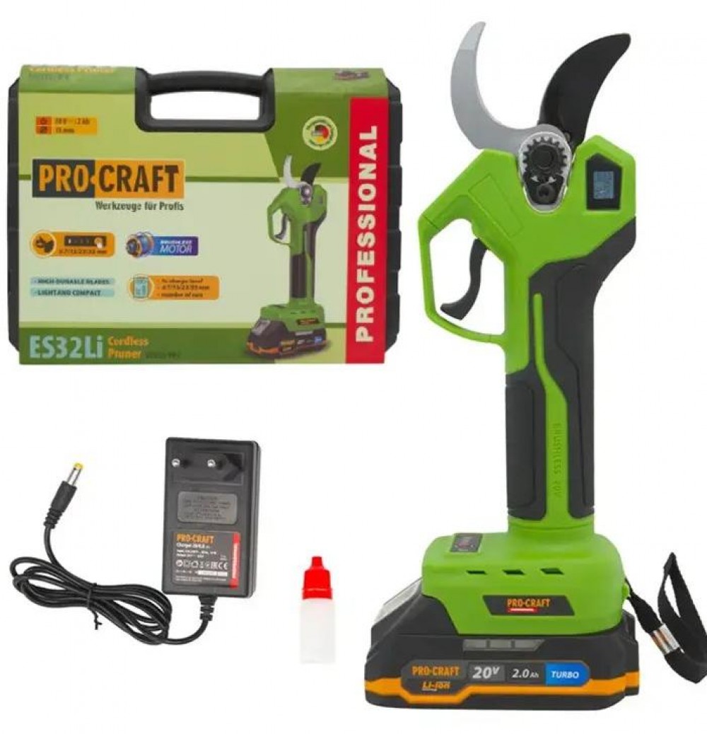 - Аккумуляторный секатор Procraft ES32Li (1 АКБ и ЗУ) кейс НФ-00005030