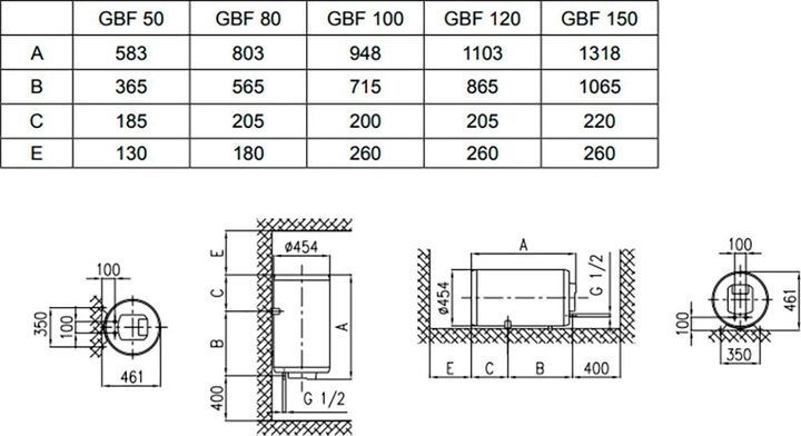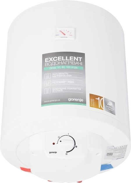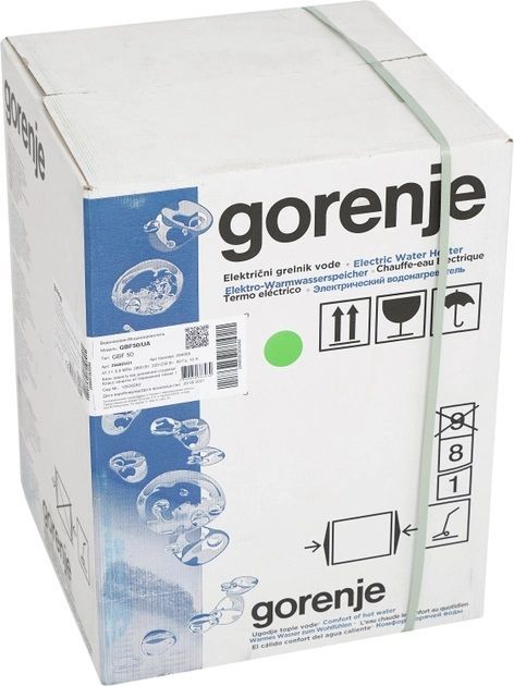 Водонагреватели серии Gorenje GBF UA объемом внутреннего бака 50, 80 и 100 литров изготовлены из эмалированной стали с защитным магниевым анодом, встроенным термометром, индикацией нагревательного элемента и износа анода, обратным клапаном в комплекте. Встроена защита от замерзания. Класс защиты: IP 24. Рабочее давление: 9 бар.