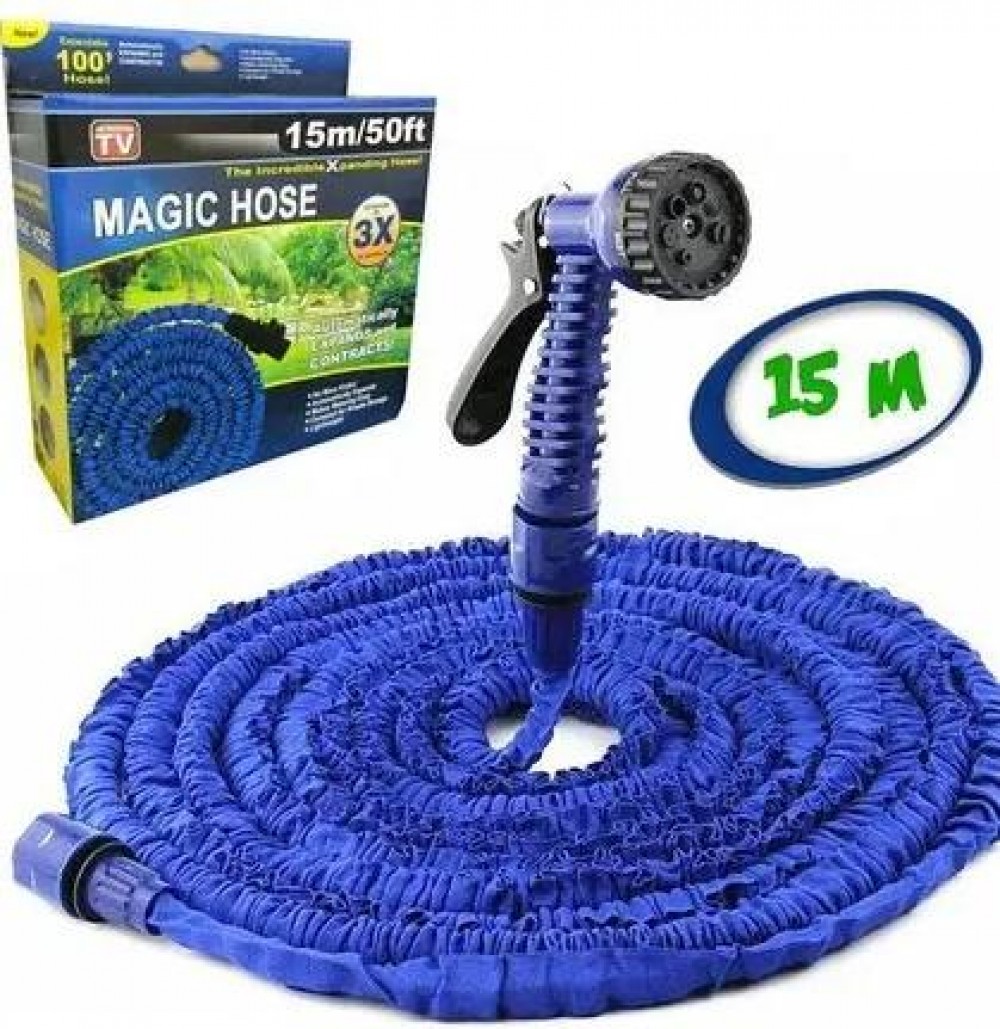 - Cадовый шланг для полива Magic-hose Pro 15 м (50FT) с распылителем, синий