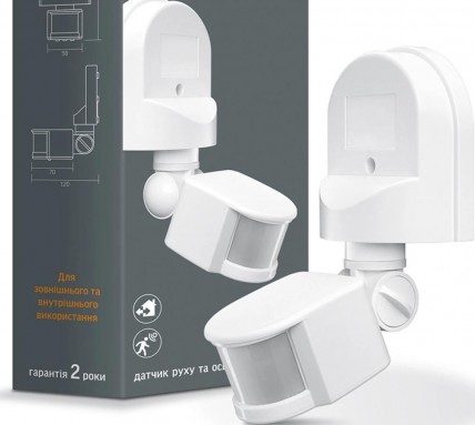 Инфракрасный датчик движения и освещения позволяет управлять системой освещения и фиксирует перемещения объектов. Датчик автоматически включает и выключает освещение в помещении в зависимости от обнаружения движения в своем поле действия. Широко используется для освещения промышленных, складских, парковых, придомовых территорий, зон отдыха, дорог. Рекомендуемая высота установки-1,8-2,5м.