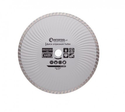 - Диск отрезной по камню TURBO алмазный, 230 мм, 16-18% INTERTOOL CT-2005
