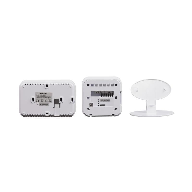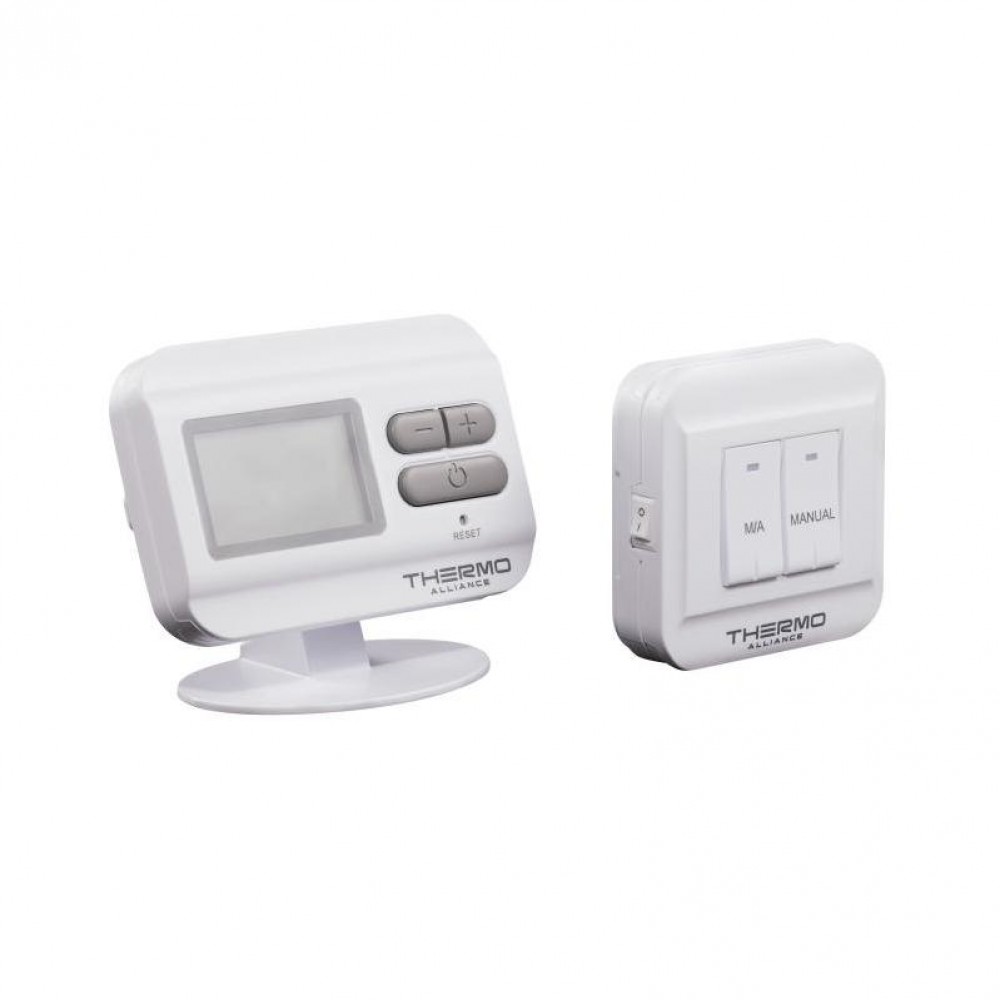 Дневной термостат Thermo Alliance ТА-2301RF имеет два блока: блок управления отопительным прибором (включение/отключение) и блок комнатного термостата, он используется в качестве графического интерфейса пользователя для определения и контроля температуры в помещении. Оба блока поддерживают связь радиочастотами (RF).