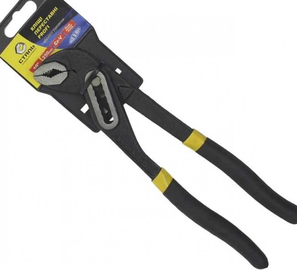 Клещи переставные Сталь Profi длиной 180 мм прекрасно справятся с захватом труб различного диаметра, и помимо сантехники, подойдут для большинства слесарных и монтажных работ. Губки щипцов закрываются плавно в нескольких позициях, а общая конструкция исключает проскальзывание крепежного шарнира. Мягкая прорезиненная рукоятка обеспечивает удобный захват инструмента.
