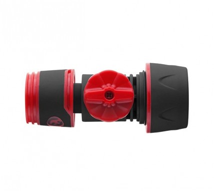 В конструкции коннектора предусмотрен вентиль для перекрытия потока воды или же регулировки напора в системе или перед распылителем. Удобный пластиковый вентиль позволяет быстро выставить необходимое положение.