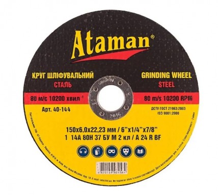 - Круг отрезной по металлу Ataman 150х6.0х22.23