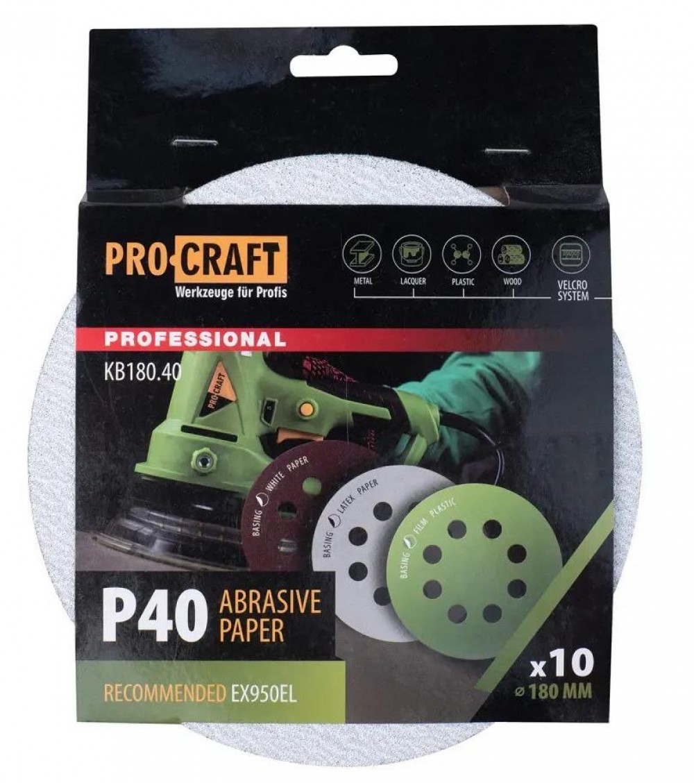 - Круг шлифовальный самозацепной Procraft KB180.40 UNIVERSAL (набор 10 шт.) 8 отв.