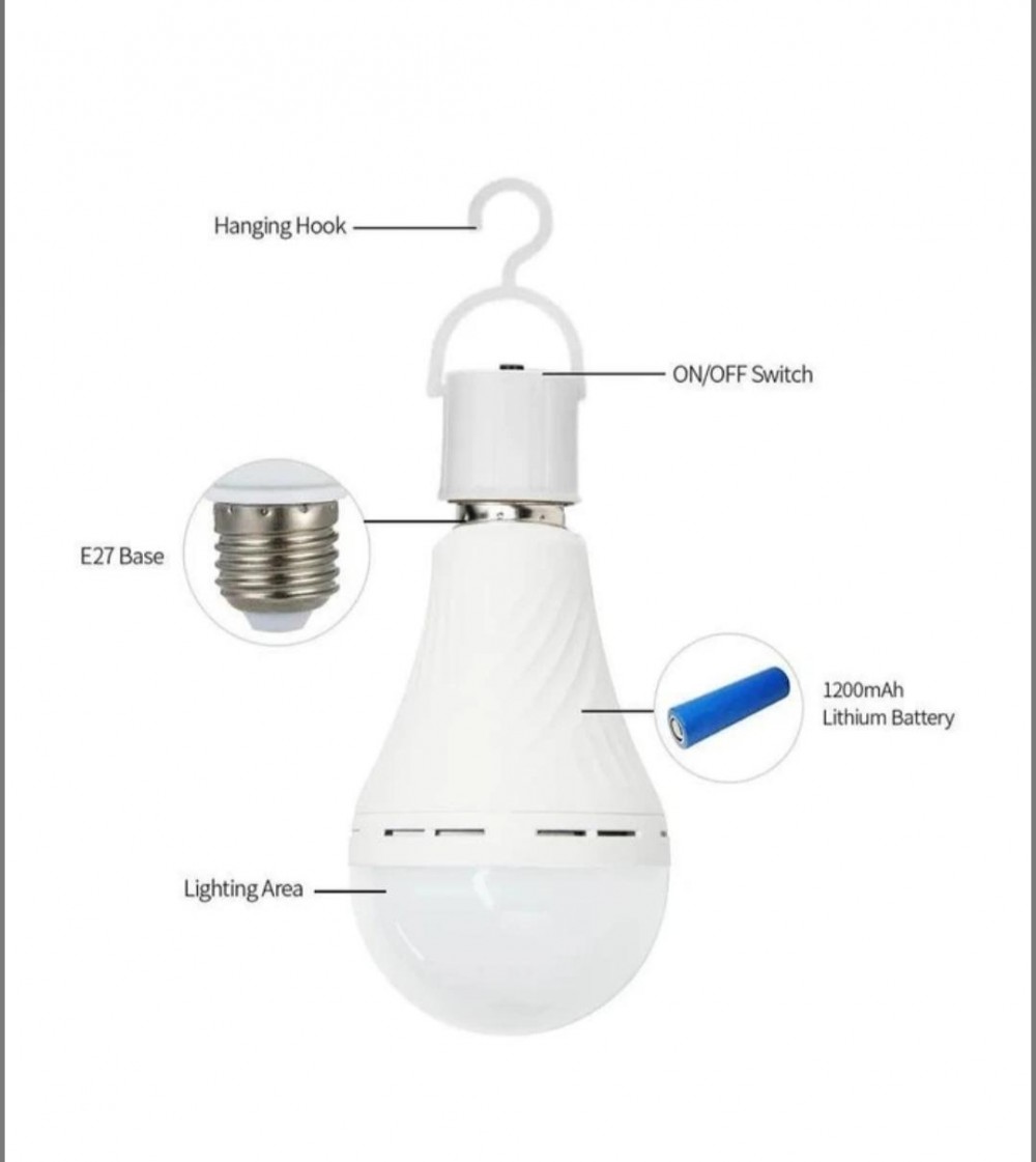 Лампа аккумуляторная 1200 mAh 9 Вт E27 В 4100 К