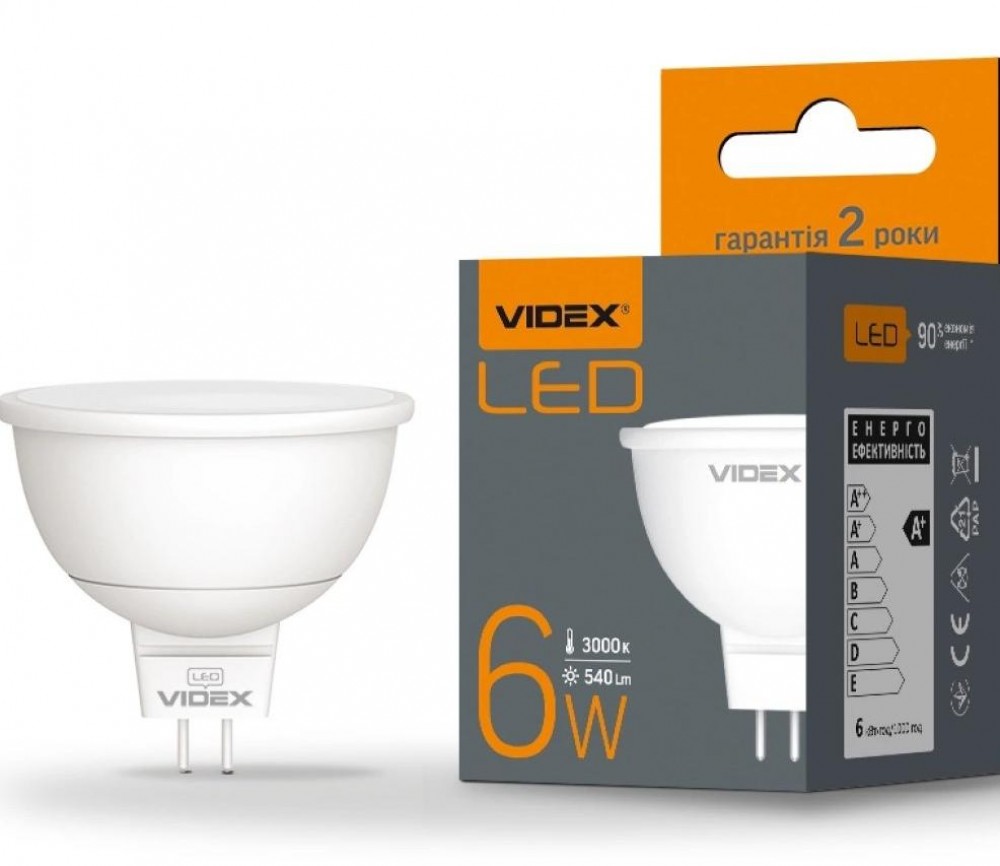 - LED лампа MR16e 6W GU5.3 4100К VIDEX