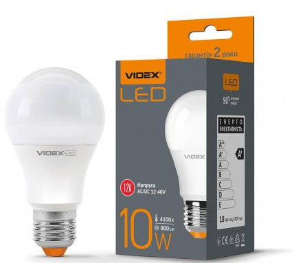 - LED лампа VIDEX A60e 12V 10W E27 4100K
