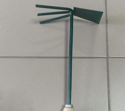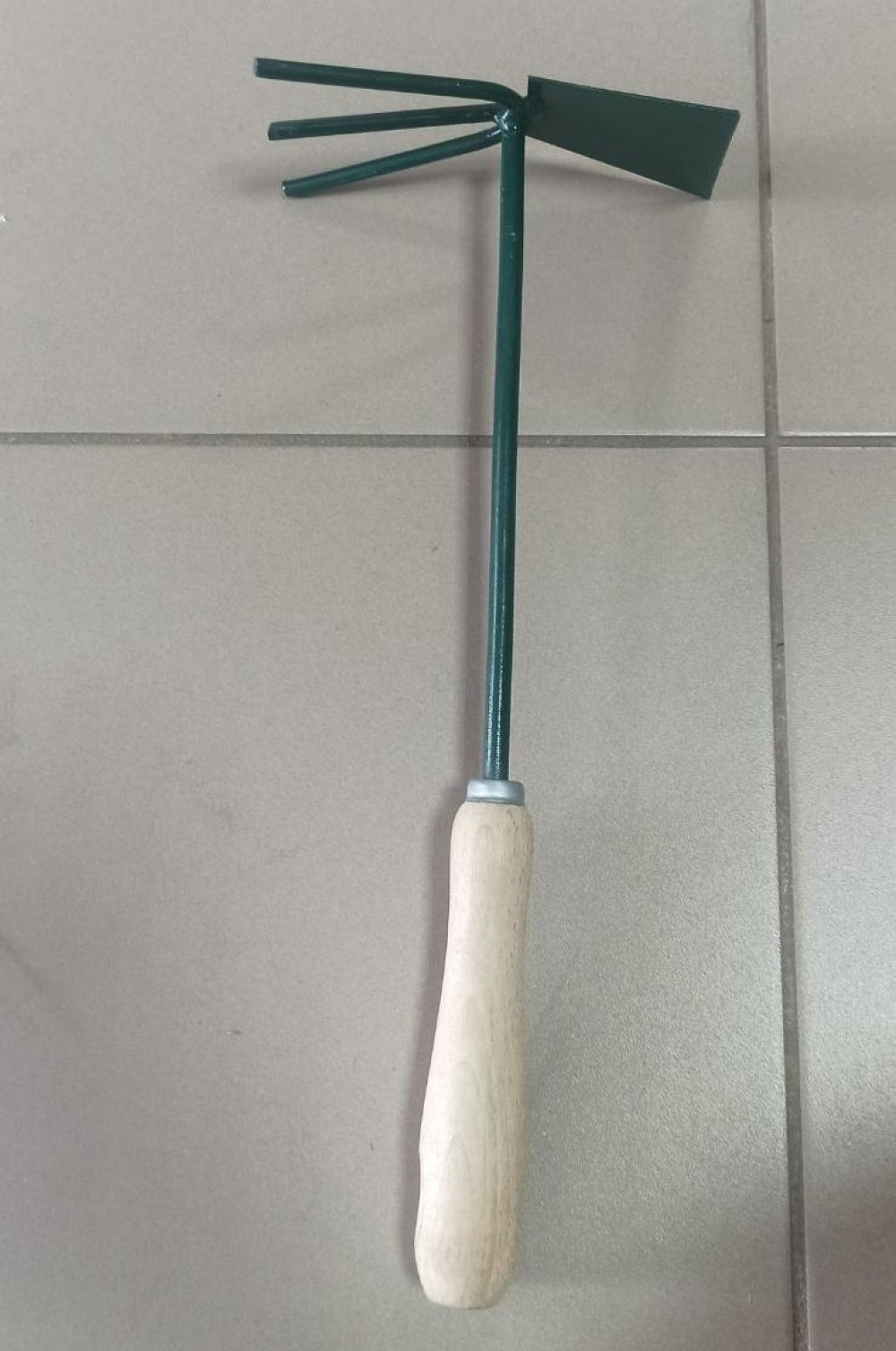 Одна сторона инструмента – это мотыжка которую используют для обработки междурядий, удаления сорняков, создания поливочных борозд, а другая – разрыхлитель с тремя зубцами, который используют для разрыхления, окучивания, прополки и выравнивания грунта. Мотыжку можно использовать для работы в узких междурядьях без повреждения растений. Также этот инвентарь используют для формирования углублений и канавок в почве под посадку семян и для окучивания растений.