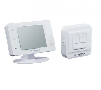 Недельный программируемый термостат Thermo Alliance ТА-2701Wi-Fi RF имеет два блока: блок управления отопительным прибором (включение/отключение) и блок комнатного термостата, он используется в качестве графического интерфейса пользователя для определения и контроля температуры в помещении. Оба блока поддерживают связь радиочастотами (RF). Функция "Wi-Fi" позволяет дистанционно управлять устройством с помощью мобильного приложения ThermoAllianceSmart.