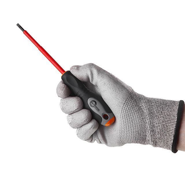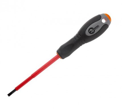 Электроизолированная отвертка INTERTOOL предназначена для безопасной и удобной работы с электросетями, предохранителями, переключателями и различными приборами, под напряжением до 1000 В.