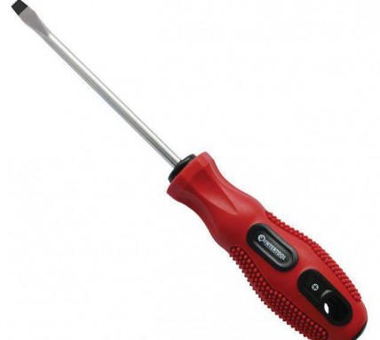 Стержень отвертки изготовлен из прочной Cr-V стали, которая известна всем мастерам своей надежностью и выносливостью. В составе этой стали присутствуют хром и ванадий, которые придают изделию высокую стойкость к износу. Также сталь отличается долговечностью и не подвержена хрупкому разрушению. Стержень глубоко посажен в рукоятку и крепиться в двух местах, что исключает возможность срыва.