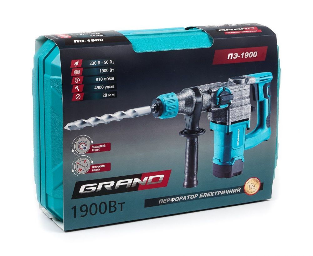 Стоит купить перфоратор Гранд ПЭ-1900 за высокую мощность двигателя в 1 900 Вт. Это позволяет развивать частоту ударов до 4 900 уд./мин. с энергией в 5.2 Дж в каждом. Модель оснащена первоклассной системой принудительного воздушного охлаждения. Перегрев во время работы исключен. Долговечность оборудования также на высоте. Редуктор изготовлен из магниевого сплава.