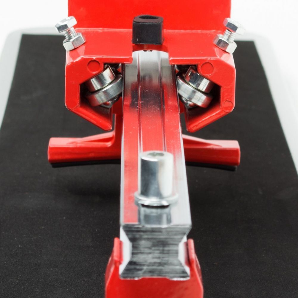 Режет легко и мягко благодаря подшипниковой системе. Для более точного и плавного хода оснащен калибровочными винтами, с помощью которых вы можете настроить прижимной обхват. Также плиткорез оснащен усиленной платформой, линейкой и транспортиром.