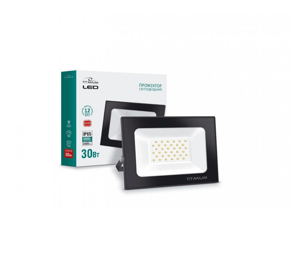 LED прожектор TITANUM 30W 6000K - высокотехнологичный источник света. Обеспечивает ровный световой поток и максимальную мощность с первой секунды работы. Предназначен для общего и декоративного освещения архитектурных объектов, торговых площадей, рекламных щитов, создание световых эффектов, освещения открытых территорий частных усадеб и промышленных предприятий. Светодиодный прожектор TITANUM- экологическая и экономическая замена ламп накаливания и люминесцентных ламп.