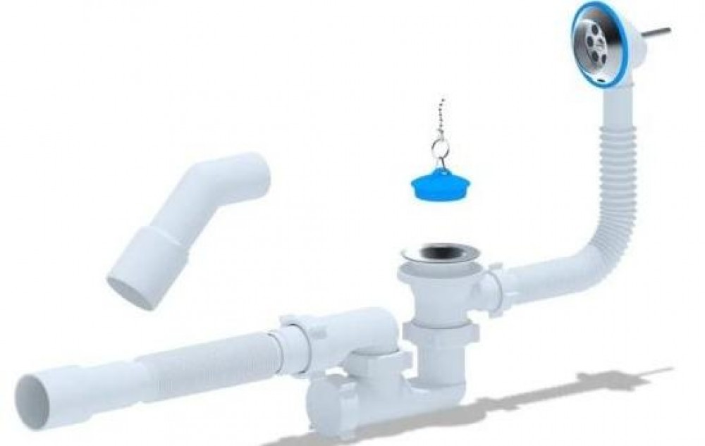 Благодаря наличию гибкой отводной трубы, сифон позволяет легко решить проблему отвода сточных вод в условиях ограниченного пространства.