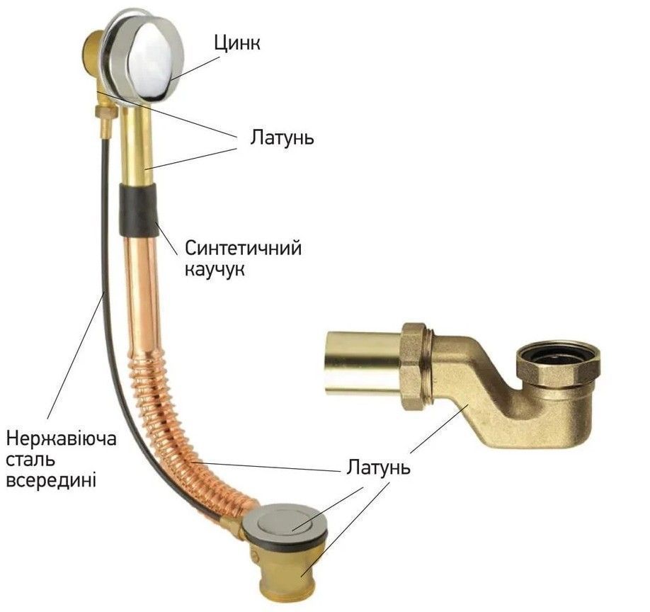 • Тип монтажа: Наружный на сливное отверстие ванны